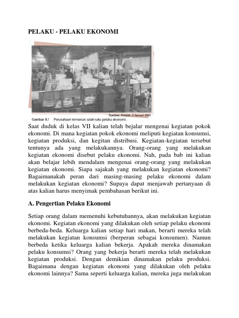 Pelaku Ekonomi Pengertian Peran Macam Lengkap